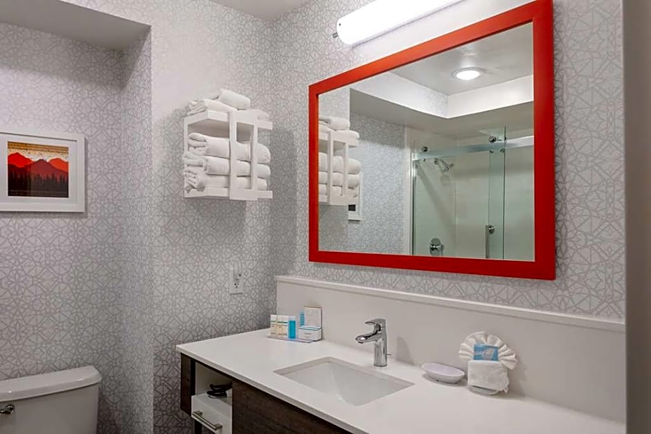 Any corresponding photo may not reflect the specific accessible room type or room feature. This mobility and hearing accessible, non-smoking room features one king-sized bed, and an accessible roll-in shower. The room also has a visual alarm and notification devices for the doorbell or door knock and incoming phone calls. The room features comfortable soft seating, microwave, refrigerator, a HDTV, and easy to operate alarm clock/radio. The free high-speed internet access will help you stay connected while on the road. If you prefer not to work at the desk, you can use the convenient lapdesk instead. You'll also enjoy the convenience of having a coffee maker with tea service and iron/ironing board in your room.
